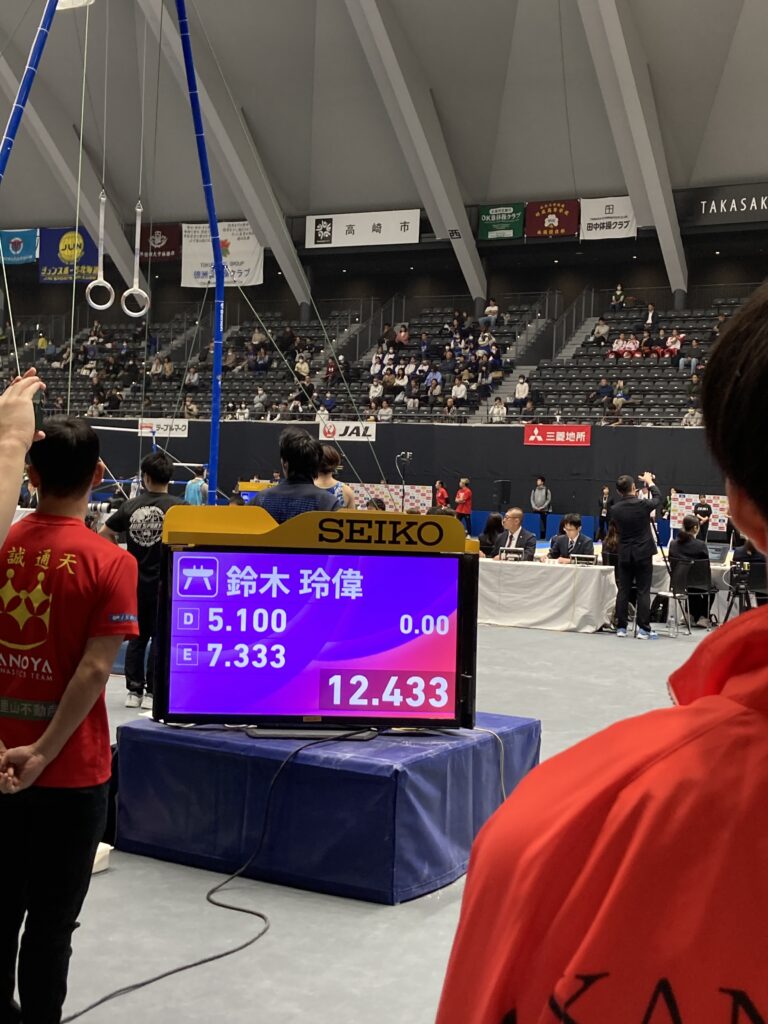 11月13日〜16日に群馬県高崎市の高崎アリーナで第79回全日本体操団体選手権・全日本体操種目別選手権が開催されました。今大会は今年度の団体日本一と種目別日本一を決める大会で日本トップの大会です。本学体操競技部から鈴木玲偉(スポーツマネジメント学科3年)、本学体操競技部卒業生の早坂晶宗(経営情報学科2021年卒)が予選を勝ち抜き出場しました。