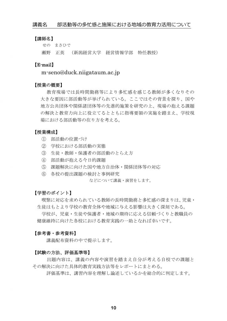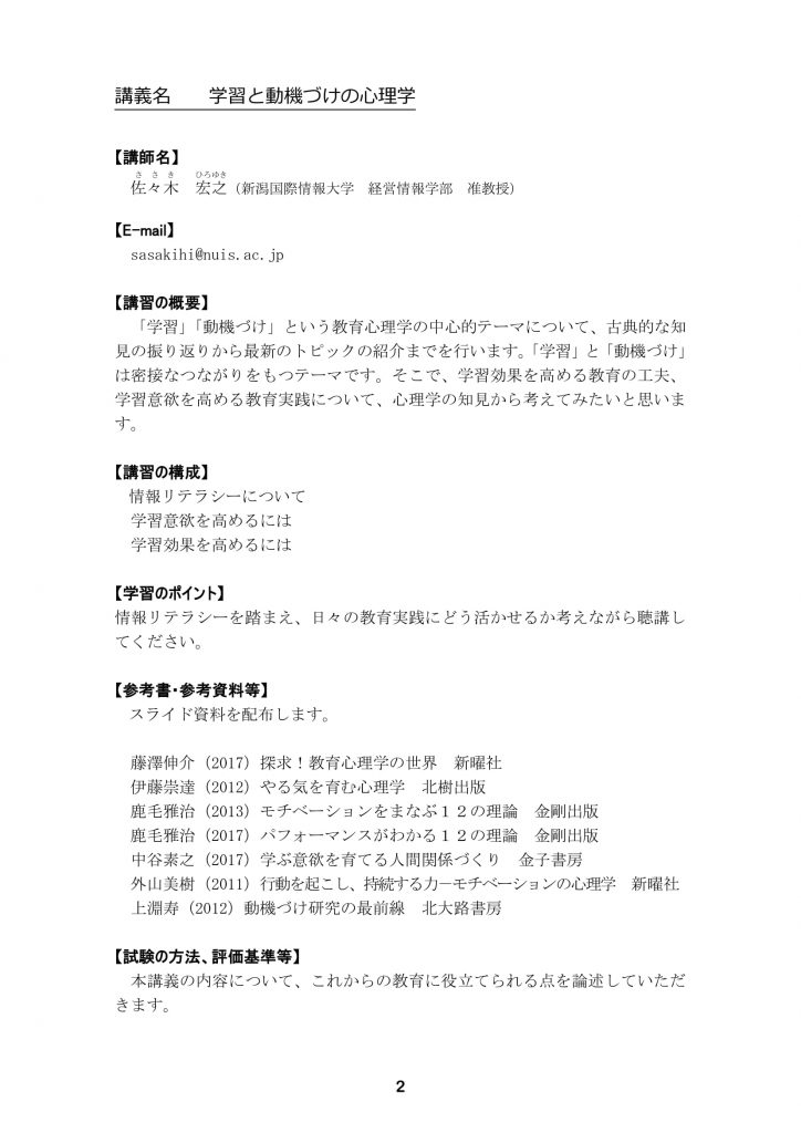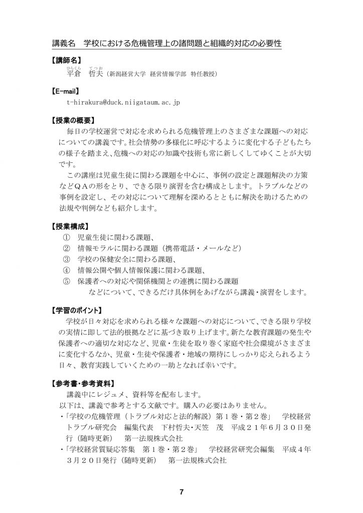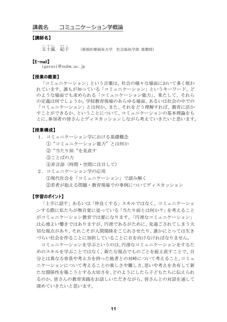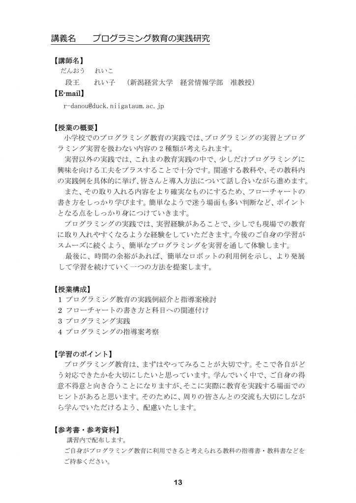 【新潟経営大学教員免許状更新講習】当日のプログラムについて