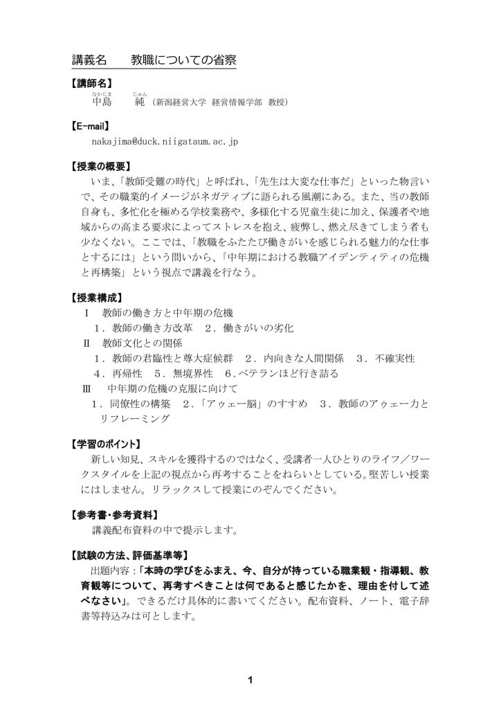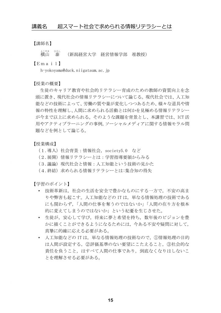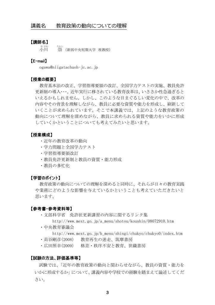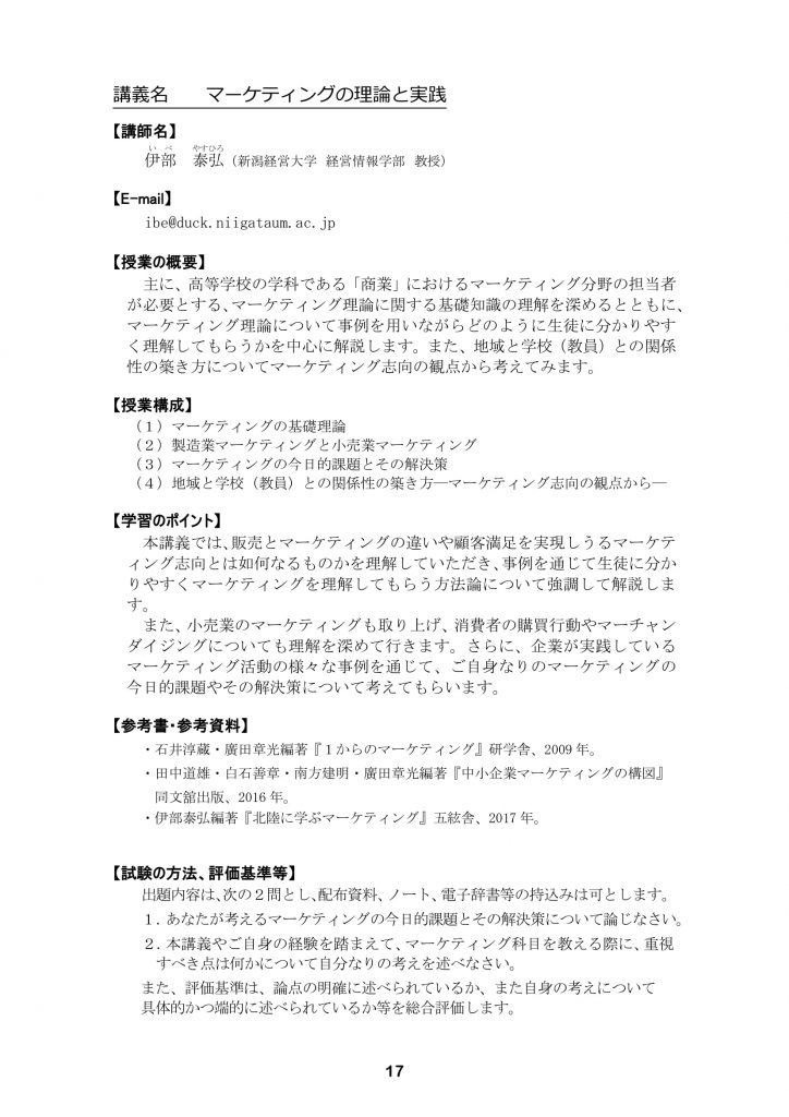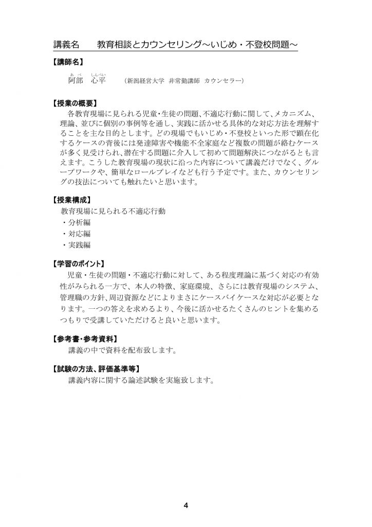 【新潟経営大学教員免許状更新講習】当日のプログラムについて