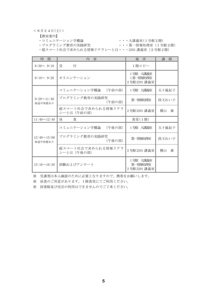 講習当日に配布を予定しているプログラムです。 当日の講習日程及びシラバスや試験内容が記載されておりますので、事前にご確認ください。 なお、前述のとおり講習当日に受付にて配布いたしますので、印刷の必要はございません。