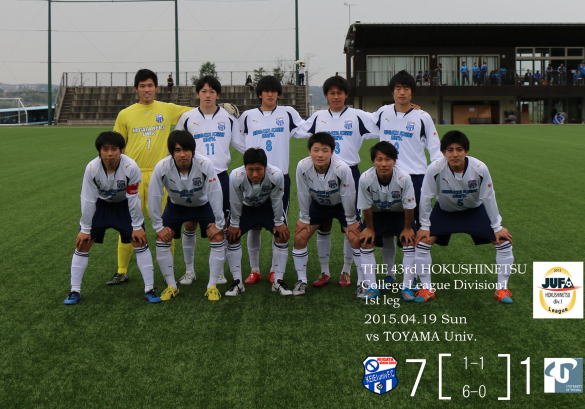 | 第43回北信越大学サッカーリーグ1部 前期第1節 vs富山大学 開催データ | |||||